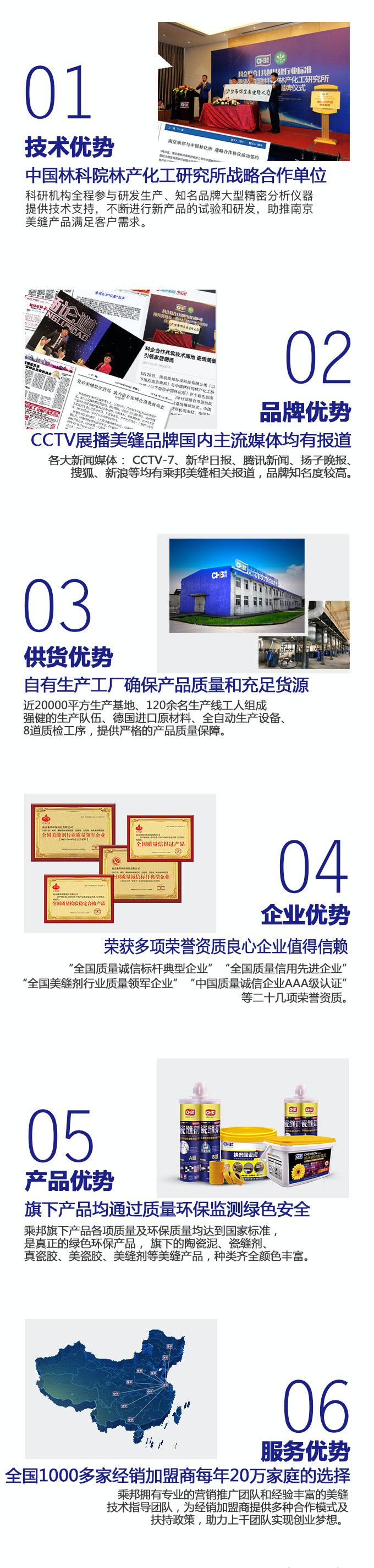 南京乘邦環(huán)保科技有限公司成立于2005年,是集南京瓷磚美縫南京美縫施工、美縫劑產(chǎn)品的研發(fā)與銷&售等產(chǎn)業(yè)的南京瓷磚美縫公司。目前公司主打美縫產(chǎn)品為國(guó)內(nèi)推出的傳統(tǒng)美縫劑升級(jí)產(chǎn)品:乘邦納米陶瓷泥、水性環(huán)氧彩砂,天然砂質(zhì)顏料,化妝品般安全無(wú)污染。乘邦陶瓷泥顏色豐富,大大提升裝飾效果,打造魔幻家居,讓家也可以炫酷起來(lái)。它綠色環(huán)保防霉防污,堅(jiān)硬如瓷細(xì)膩光潔,不僅做到瓷磚縫隙“不變黑”,而且在為每一個(gè)家庭健康美麗而努力,這是乘邦公司的最高準(zhǔn)則,也是乘邦人為之努力奮斗的目標(biāo),以此目標(biāo)乘邦本著"誠(chéng)信、合作、專業(yè)、超越"的理念,詮釋優(yōu)質(zhì)服務(wù),演繹品質(zhì)生活。同時(shí)公司擁有一支管理完善、經(jīng)驗(yàn)豐富的專業(yè)美縫施工隊(duì)伍。在南京瓷磚美縫價(jià)格方面也有很大的優(yōu)勢(shì),每年為南京近萬(wàn)家庭提供美縫服務(wù),其自主研發(fā)的乘邦牌產(chǎn)品在10余省市已有近千個(gè)代理商,在全國(guó)范圍內(nèi)享有很高的知名度。